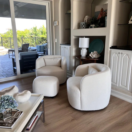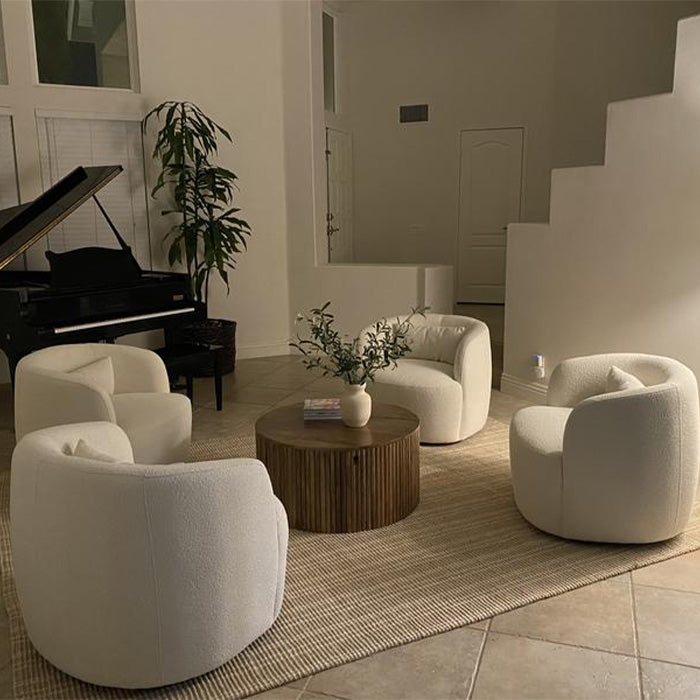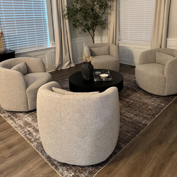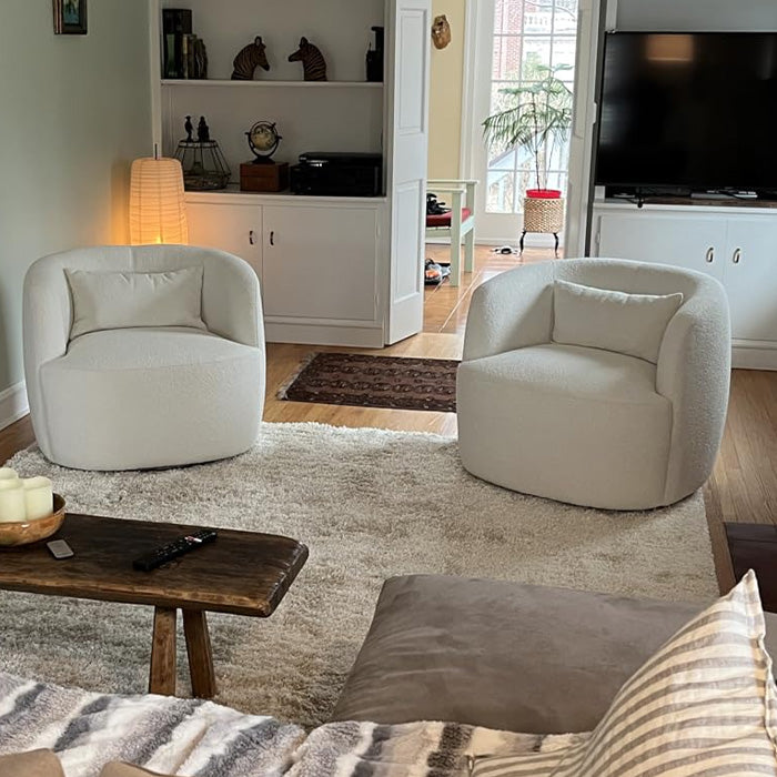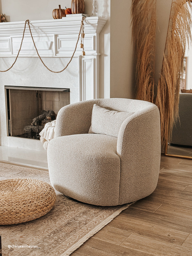 - Ashlie Bouclé Swivel Barrel Chair