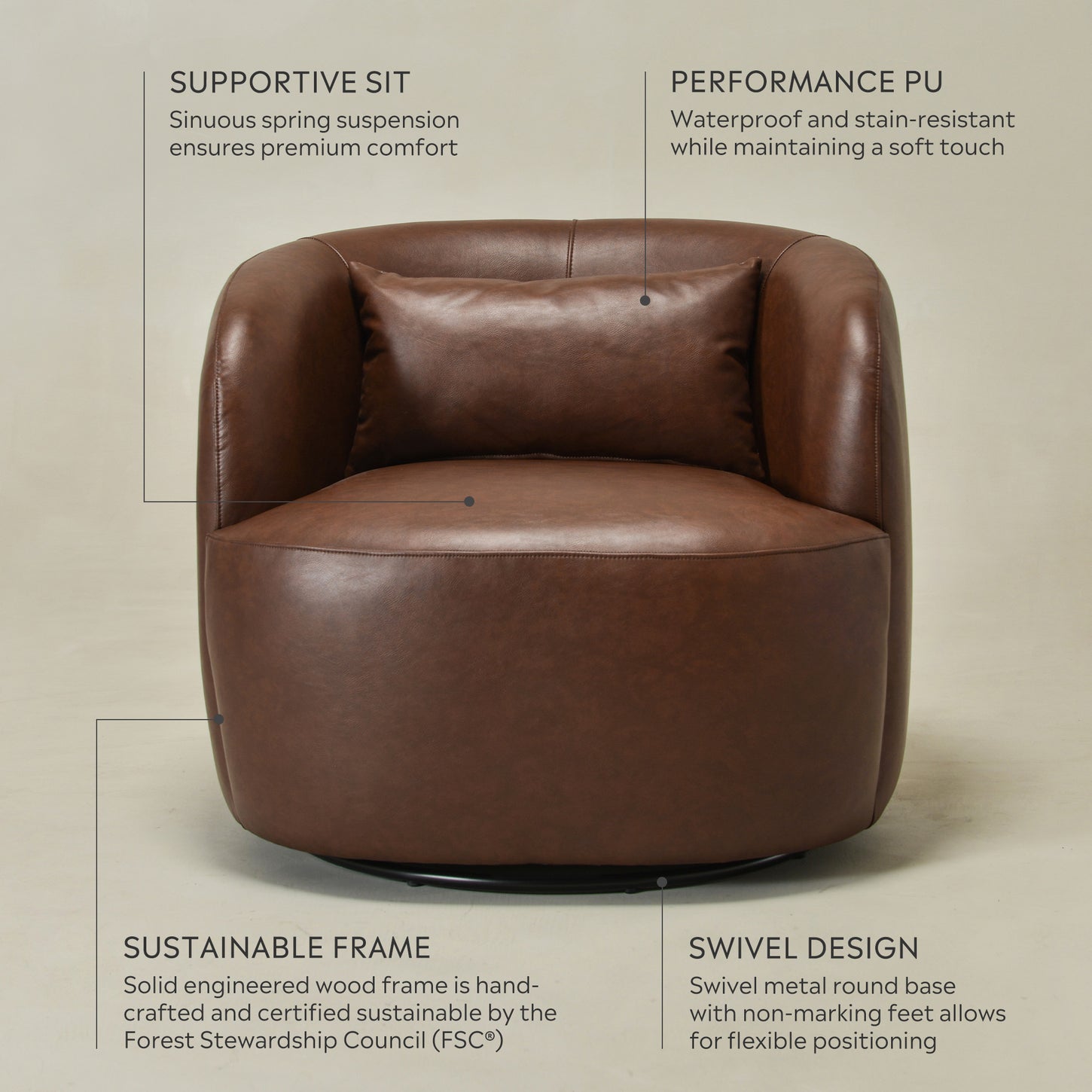 Featuring a rounded shape, a swivel base, and lumbar support. Upholstered in embossed faux leather, it provides a smooth, durable surface that is easy to maintain, adding a touch of refinement to your space.