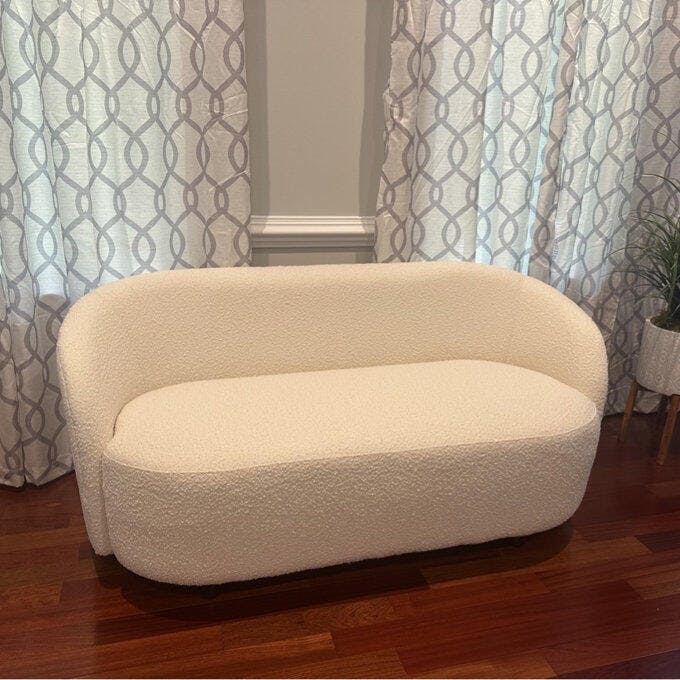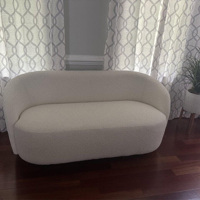 Introducing our 68-inch wide Everitte Loveseat Sofa, where comfort meets elegance. Upholstered in luxurious Bouclé fabric, this sofa not only feels soft and cozy but adds a sophisticated texture to your living space. The frame is crafted from a sturdy combination of solid pine and plywood, ensuring long-lasting durability.