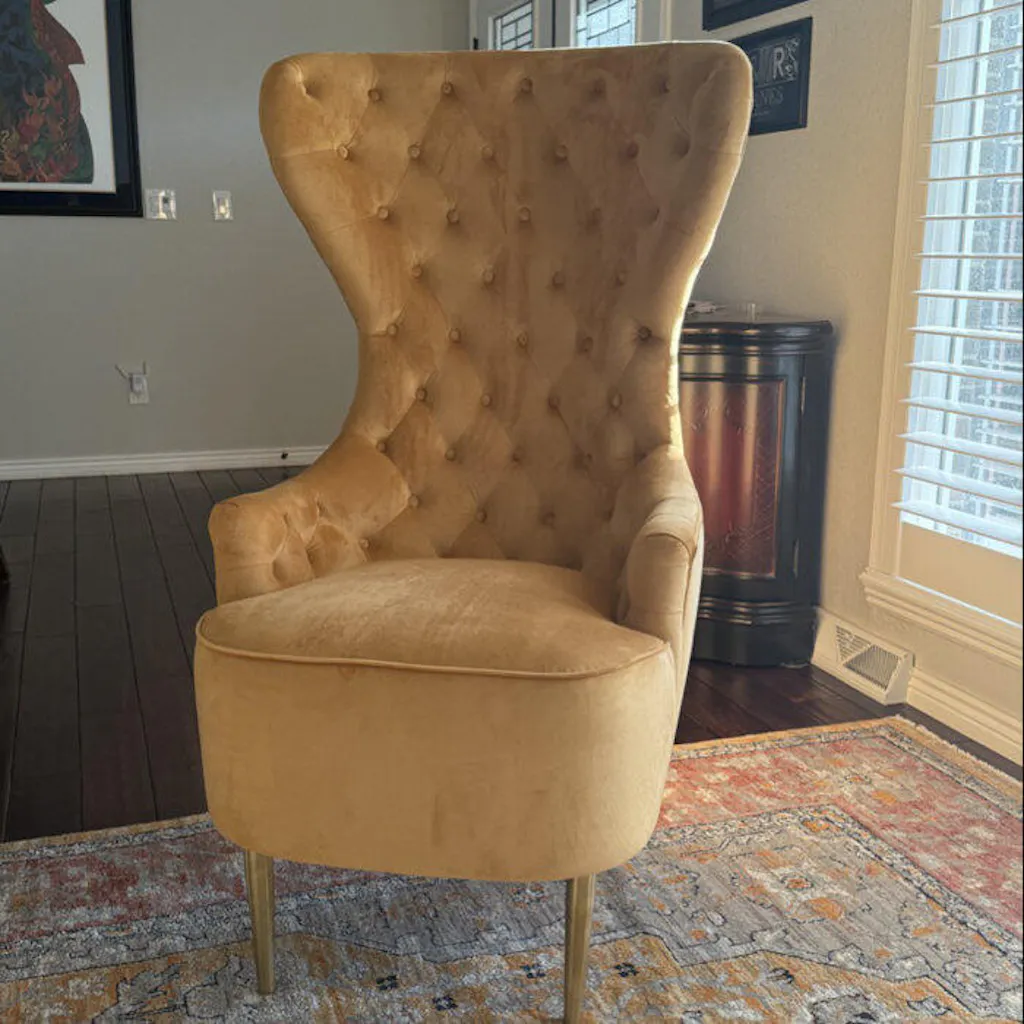 Letitia Velvet Wingback Accent Chair - Camel Accent Chair | Decorative Accent Chairs | Kinwell Furniture | Modern Accent Chairs